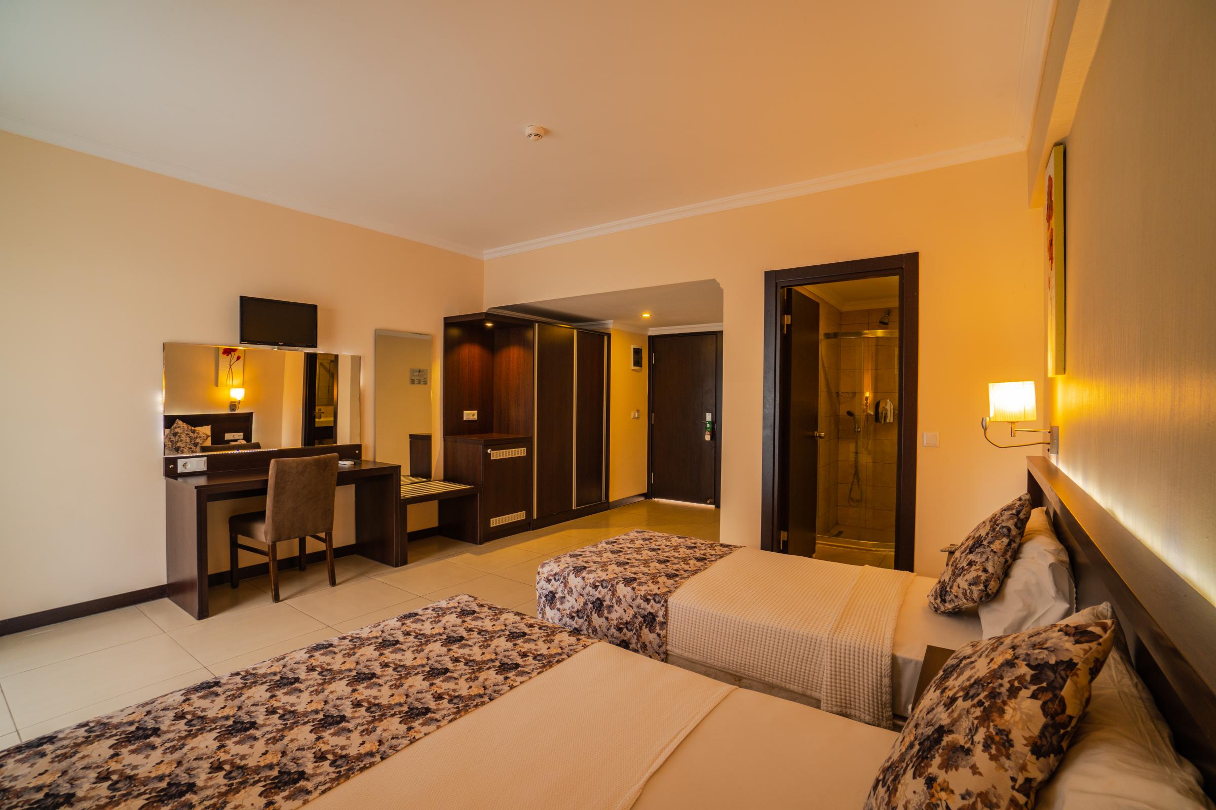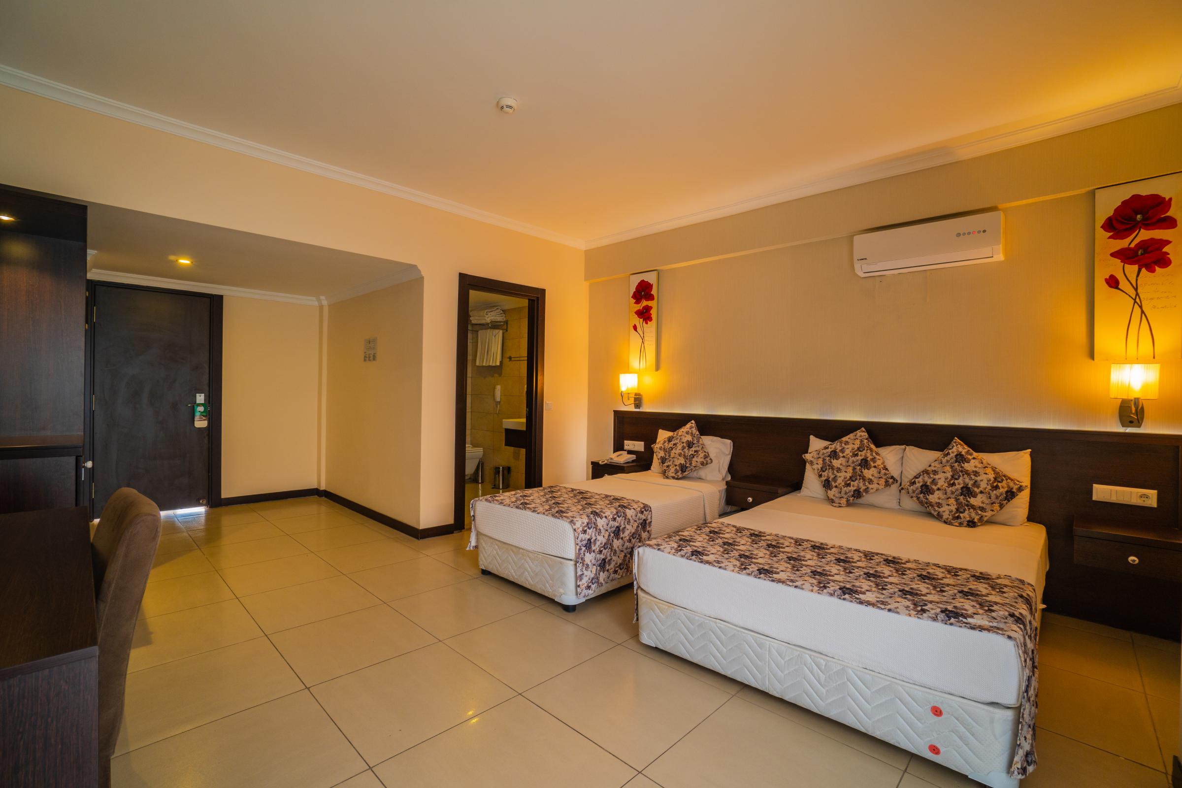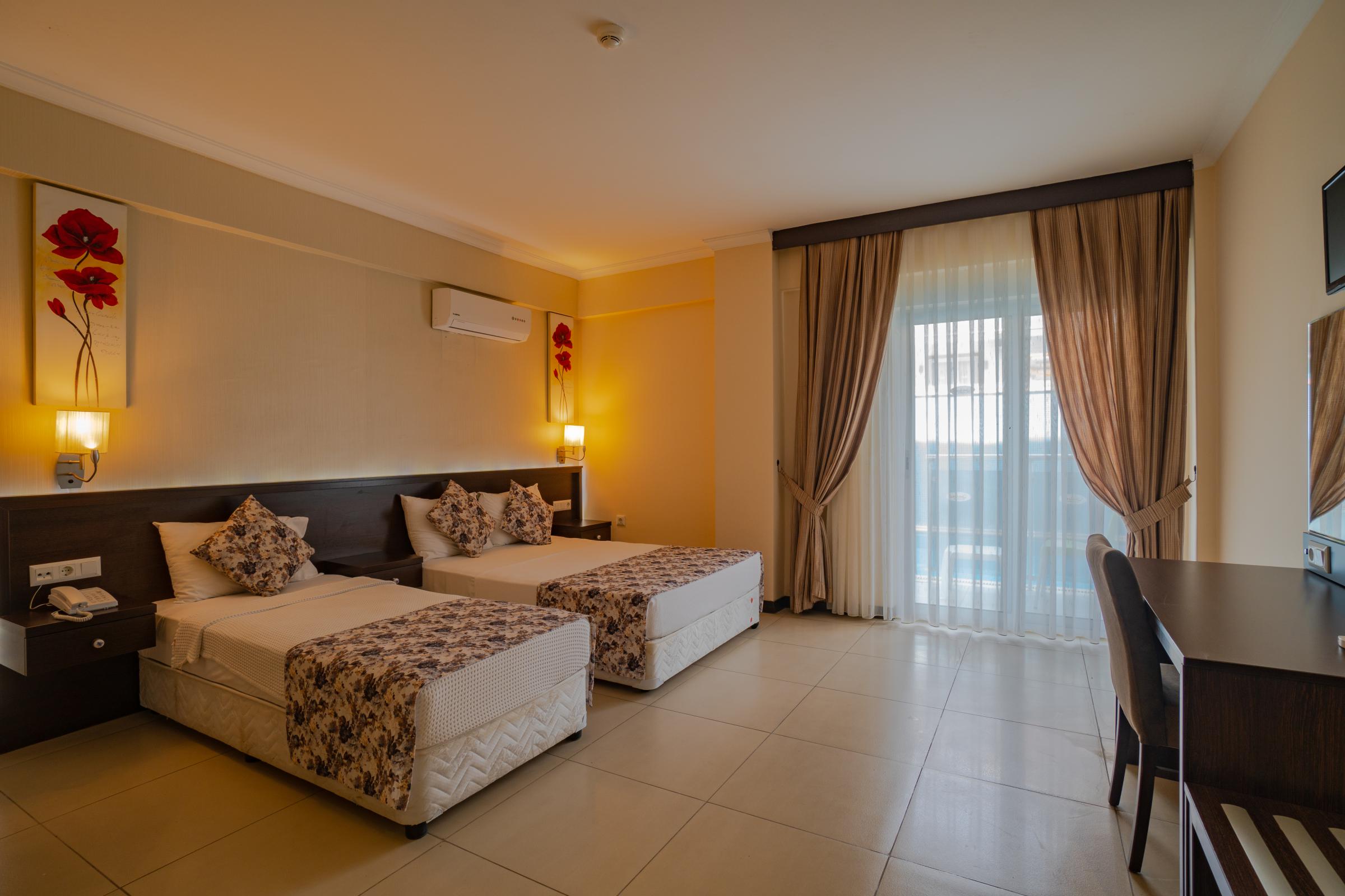 Toplam 181 odadan oluşan tesisimizde 96 Standart Oda, 20 Ekonomik Oda, 14 Jakuzi Deluxe Oda, 16 Aile Odası, 26 Ranzalı Aile Odası ve 9 Swim-Up Oda bulunmaktadır. Standart odalarımız 24 metrekare olup, misafirlerimizin konforlu konaklama deneyimi için tasarlanmıştır. Odalarımız iki tek kişilik veya bir çift kişilik yatak seçeneğiyle konaklamalarınıza ekstra bir rahatlık katıyor.